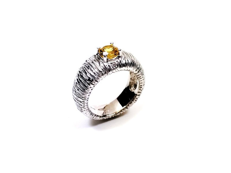 Anello solitario Striped in argento con incastonata un quarzo citrino naturale.